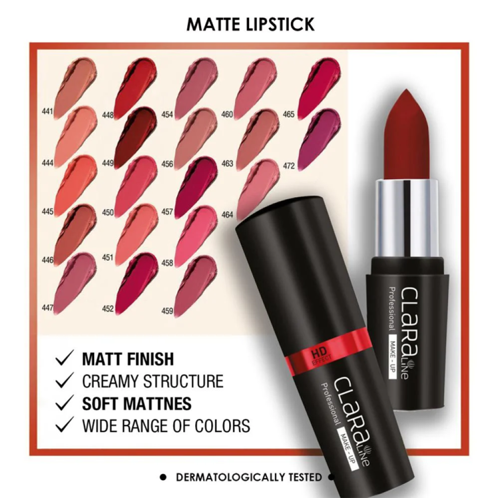 اختر أحمر الشفاه المطفي من كلارا لاين للحصول على تجربة لون ثابت وجودة عالية في منتجات التجميل. انطلق بثقة مع هذا الأحمر المصمم ليدوم طويلاً دون تلطخ، مع تركيز عالي من الصبغة لتوفير تغطية لونية قوية. مناسب لجميع الأذواق والمناسبات، حيث يأتي بـ 16 درجة مختلفة.