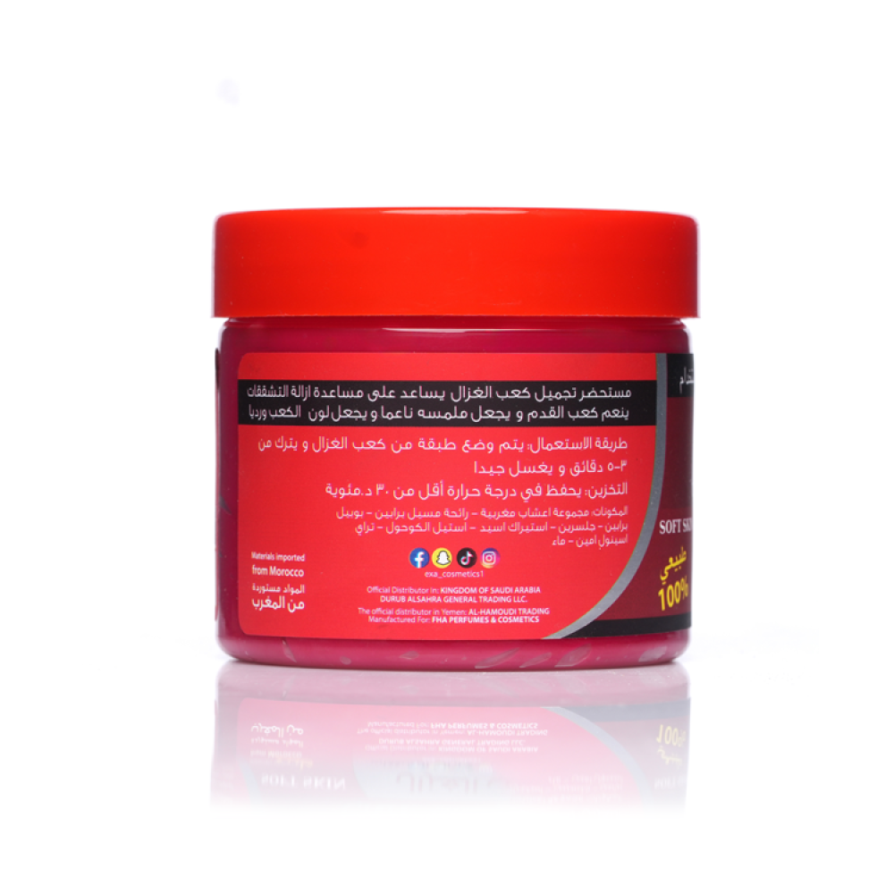 مستحضر تجميل كعب الغزال يساعد على مساعدة ازالة التشققات ينعم كعب القدم ويجعل ملمسة ناعما ويجعل لون الكعب ورديا