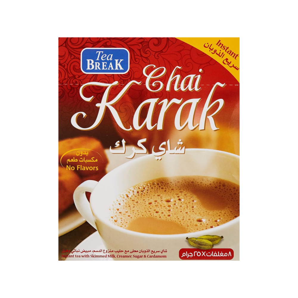 شاي تي بريك كرك، شاي كرك سريع التحضير، شاي كرك بدون مكسبات طعم، شاي كرك محلى، شاي كرك بحليب منزوع الدسم، شاي كرك مع هيل، شاي كرك نباتي، علبة شاي كرك.