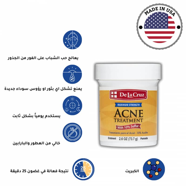 دي لا كروز مرهم اكني تريتمنت معالج للحبوب والبثور مع 10% كبريت 73.7جرام