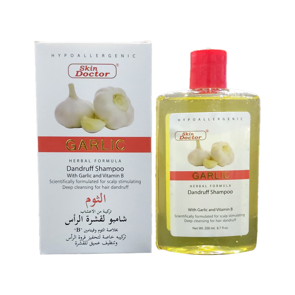 شامبو خاص يجمع بين الثوم الطبيعي ومركب فيتامين ب (B5-B6-B8) المعروف بقدرته على تعزيز بنية الشعر وتحفيز نموه. تم تركيبه لإزالة القشرة وتخفيف حكة فروة الرأس، ويغذي الشعر وفروة الرأس للحصول على شعر صحي. كما يساعد على تحسين حالة فروة الرأس ونظافتها