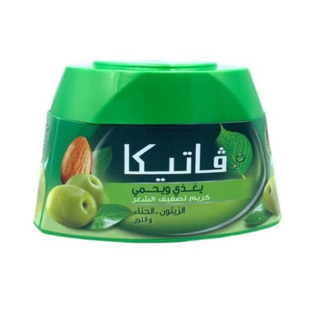 - كريم فاتيكا بزيت الزيتون يغذي ويحمي الشعر من التساقط، ويحتوي على مكونات طبيعية مثل الحناء، الزيتون، واللوز.