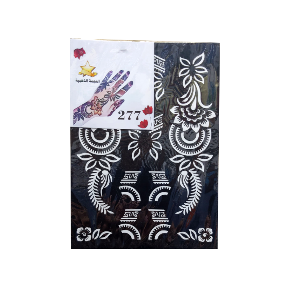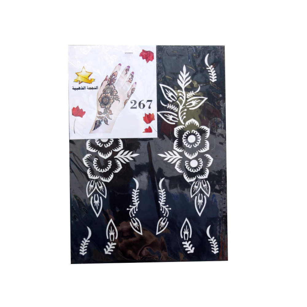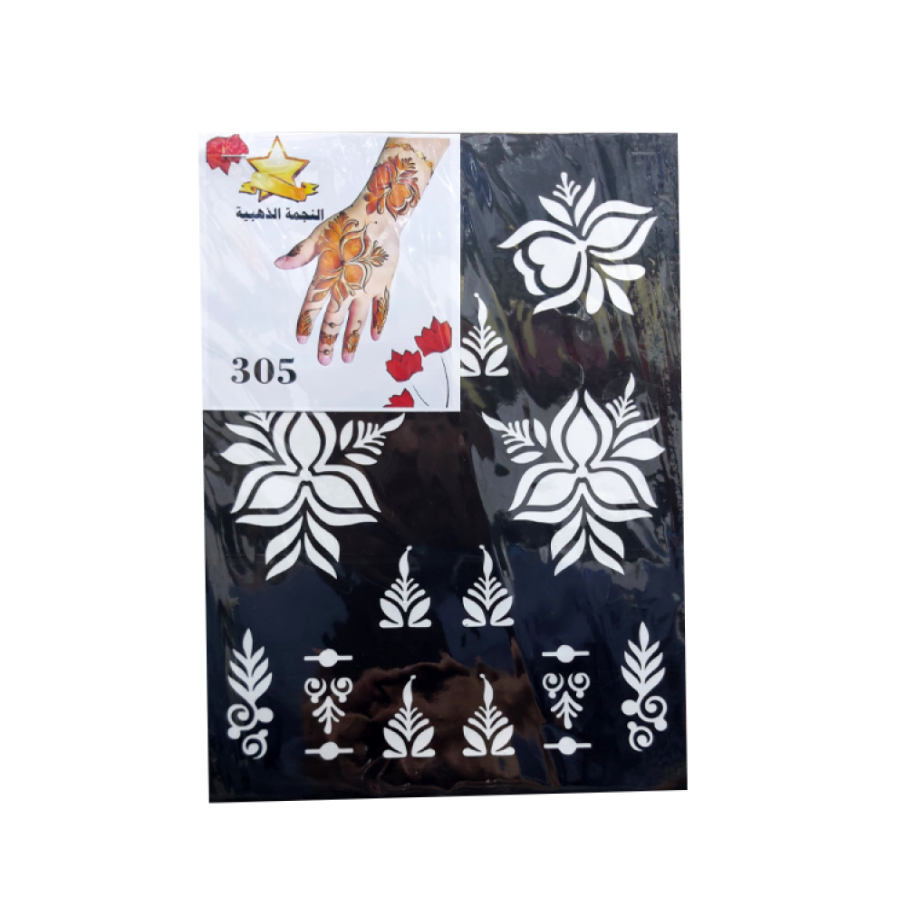 - آمنة للاستخدام: تم تصميم لصقات نقش الحناء لتكون آمنة على البشرة، مما يضمن لكِ تجربة مريحة دون أي قلق.