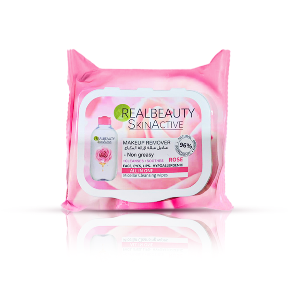 مناديل مبللة، إزالة المكياج، سكين اكتيف، ريل بيوتي، ماء ميسلار، ترطيب البشرة، تنظيف عميق، إزالة المكياج المقاوم للماء.