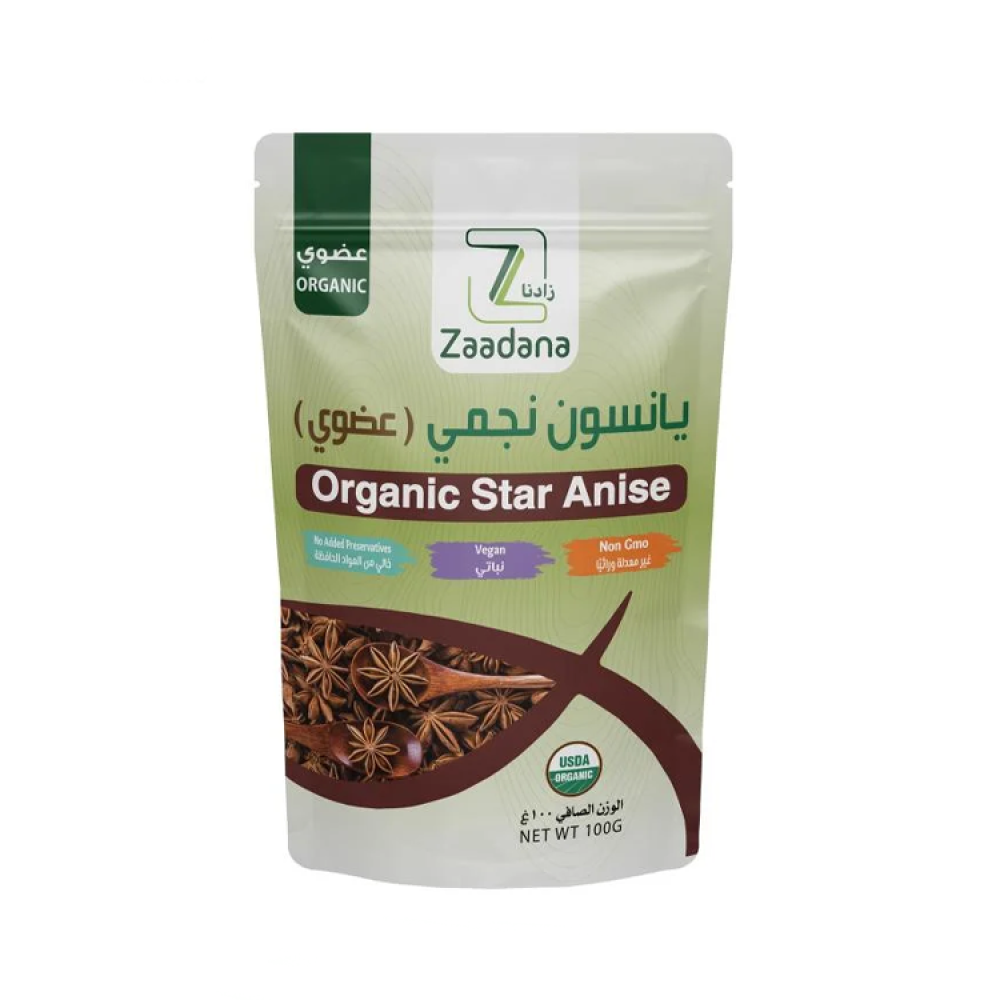 اليانسون النجمي من زادنا هو منتج عضوي نقي، يُزرع وفقًا لأعلى معايير الزراعة العضوية، دون استخدام أي مبيدات أو أسمدة كيميائية.